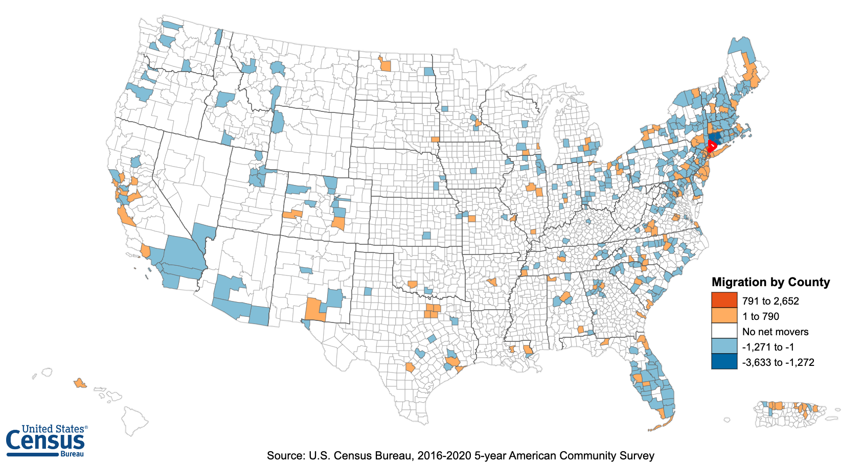 Migration by County, showing that Connecticut is Leaving for Florida and Massachusetts, but gaining from New York