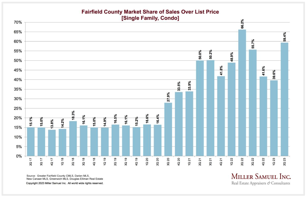 Fairfield County Market Share of Sales Over List Price 2017 to 2023