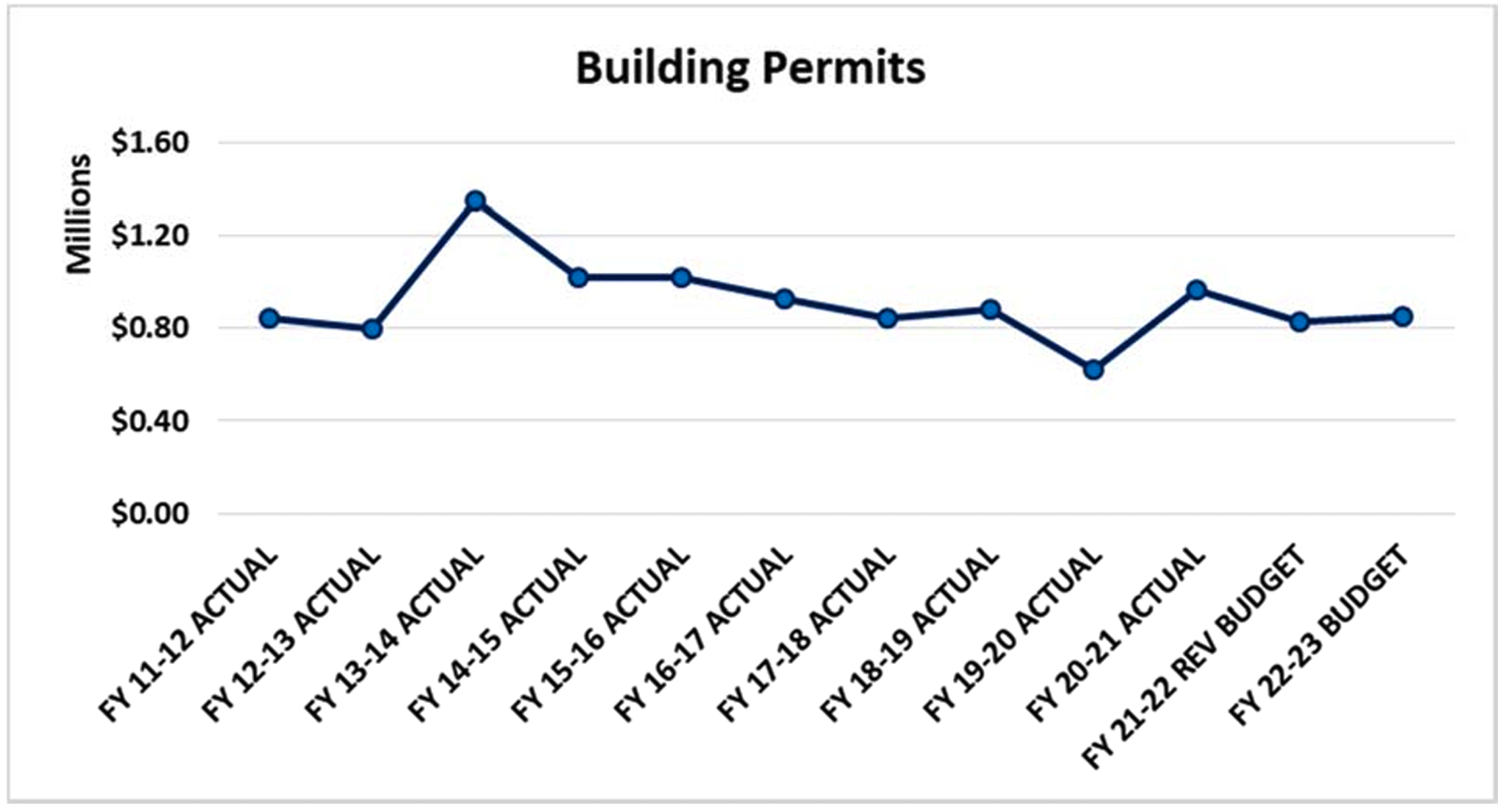 New Canaan Building Permits Budget Over the Last 10 Years does not Reflect the Increase in Permit Activity. source: New Canaan Building Department Budget Book 22-23