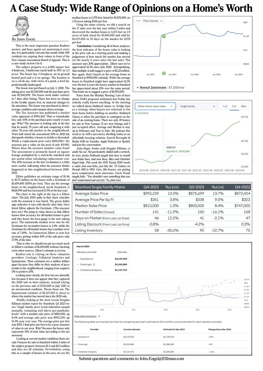 This is the most important question Realtors answer, and busy agents are answering it every day. It is particularly relevant this month while 300 residents are arguing their values in front of the New Canaan Assessment Board of Appeals. This is a case-study on how I do it: