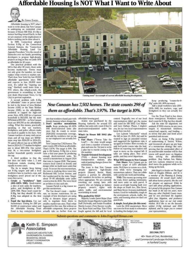Week 96: Affordable Housing Is NOT What I Want to Write About. John Engel’s Real Estate Column for the New Canaan Sentinel